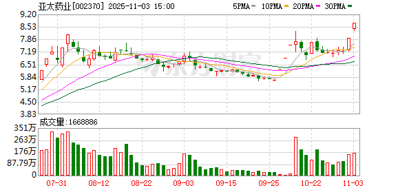 亚太药业今日涨停,全天换手率22.38%,成交额14.42亿元,振幅5.19%。龙虎榜数据显示,机构净买入1.06亿元,营业部席位合计净卖出3975.44万元。