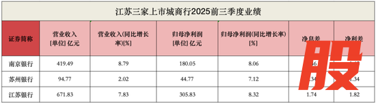 2025年前三季度,江苏三家上市城商行业绩全部实现正增长。其中,南京银行营收增速第一,江苏银行利润增速第一。值得一提的是,苏州银行资产质量最优,获董监高及大股东同时增持。